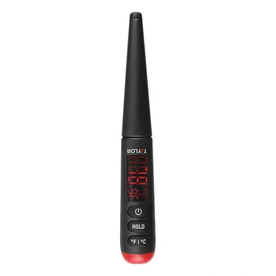 The Taylor Pro digital step stem thermometer is ideal for checking that foods and liquids are cooked to the correct temperature. Accurate readings are essential when cooking meat, fish and poultry.The bright red LED screen displays temperatures in both fahrenheit and centigrade and additionally has a temperature hold function, allowing you to read the temperature away from the measured source.The probe is made from food safe stainless steel and includes a cover for the probe to keep it clean when not in use.The Taylor Pro digital step stem thermometer comes complete with batteries and a 5 year Taylor Pro guarantee.