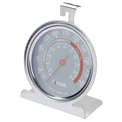 The Taylor Pro Oven Thermometer takes oven temperatures with precision - simply place it in the oven next to what you are cooking to ensure the oven is at the correct temperature.The easy to read dial displays temperature settings in °C and °F from 50°C to 300°C (100°F to 600°F).This oven thermometer also features handy 'warming', 'baking' and 'roasting' temeperature zones.The Taylor Pro Oven Thermometer measures 9cm x 8.5cm x 2cm.