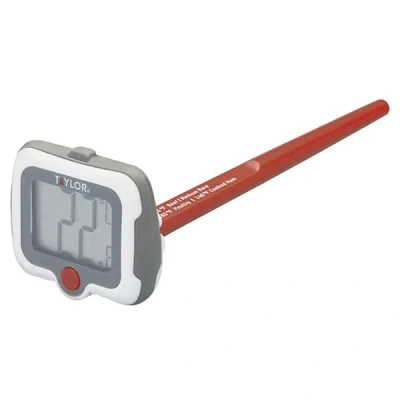 The Taylor Pro Digital Pivoting Step Stem Thermometer has a pivoting head to make reading temperatures of roasted meat, poultry of fish easier.Simply remove your roast from the oven and insert the ultra-thin stainless steel probe into its centre. The large digital display will instantly provide an accurate temperature reading in °C or °F from -40°C to 230°C (-40°F to 460°F).The display can be pivoted in a variety of different angles, whether you are taking the temperature of a beef brisket or a large turkey.The Taylor Pro Digital Pivoting Step Stem Thermometer requires 1x LR44 battery (supplied) and measures 17cm x 2.5cm x 5cm.