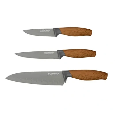 This Taylor's Eye Witness Brooklyn Beech 3 Piece Kitchen Knife Set includes a paring knife, an all purpose knife and a 6.5 santoku knife.Ideal for everyday food preparation, the blades are made from stainless steel with a soft touch beech look handle.PFAS-Free easy clean non stick coating.  Knives are not for sale to persons under the age of 18. - all knives and bladed products are delivered by Age Verified Delivery (AVD). The carrier may request proof of age in order to deliver your parcel. If proof of age is not available, or the recipient is underage, the carrier will refuse to deliver.
