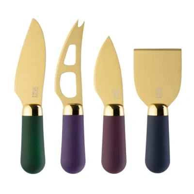 This Brooklyn Deco 4 Piece Cheese Knife Set from Taylor's Eye Witness will cater for all your cheese cutting needs - whether it be soft, hard or crumbly cheese. The set, which is supplied in a smart presentation box, includes a flat cheese knife, a parmesan cheese knife, a soft cheese knife and a hard cheese knife.Each knife in this set features a gold coloured stainless steel blade with an attractive gold-coloured bolster. The tastefully coloured ergonomic handles have a soft-grip finish offering extra control and comfort.This Taylor's Eye Witness Brooklyn Deco 4 Piece Cheese Knife Set is dishwasher safe (though hand washing is recommended) and comes with a Taylor's Eye Witness 2 year guarantee.  Knives are not for sale to persons under the age of 18. - all knives and bladed products are delivered by Age Verified Delivery (AVD). The carrier may request proof of age in order to deliver your parcel. If proof of age is not available, or the recipient is underage, the carrier will refuse to deliver.