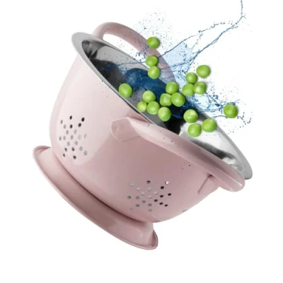 DURABLE POWDER COATING - For longer-lasting durability, this colander features a high-quality powder-coated steel exterior that resists rust, scratches, & everyday wear. The soft cherry blossom finish enhances its visual appeal, complementing both modern & traditional kitchens. Plus, its protective coating also provides a smooth, easy-to-clean surface. Lovely Cherry Blossom colour, great for traditional and modern homes. PREMIUM STAINLESS STEEL INTERIOR - For long-term reliability, this draining bowl is lined with premium stainless steel, offering a food-safe, non-reactive surface that prevents corrosion. This rust-resistant interior maintains hygiene while enhancing durability for daily kitchen use. Its smooth finish makes rinsing & draining foods quick, efficient, & mess-free and also makes for super easy cleaning. COMPACT, MINIMALIST DESIGN - This perforated colander is ideal for fruits, vegetables, rice, pasta, or any single servings or quick prep tasks. Its design means saving valuable counter & storage space, and perfect for compact kitchens, apartments, or minimalist living spaces. The disc stand on the bottom of the strainer means you can leave it in your sink to drain by itself without worrying about it tipping up or being knocked and your freshly rinsed crops escaping!. PRECISION-CUT DRAINAGE HOLES – Designed for maximum efficiency, our strainer bowl features meticulously spaced, precision-cut perforations that ensure rapid and thorough drainage. It allows water to flow through effortlessly while keeping small food items—like grains, berries, and seeds—securely contained. Whether you're draining pasta, rinsing fruits, or washing leafy greens, this colander provides super water removal without clogging or pooling, making meal prep faster and more convenient. STURDY, ERGONOMIC SIDE HANDLES - This kitchen strainer is designed with sturdy, heat-resistant side handles for a secure and comfortable grip during use. The ergonomic handles ensure easy lifting & pouring, reducing strain on your hands while handling hot or heavy foods. Built for stability, it provides confidence & control in every kitchen task., Weight: 0.33510263824 pounds, Manufacturer: Taylors Eye Witness