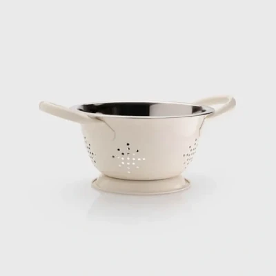 Don’t let the size fool you—this Taylor’s Eye Witness Oyster Mini Stainless Steel Colander is small but mighty. Whether you're rinsing fresh berries, draining canned vegetables, or straining a single serving of pasta, this compact colander offers big performance in a space-saving design.Made from high-quality stainless steel and finished with a stylish oyster powder coating, this mini colander is built to last. It resists rust, holds its shape, and adds a modern, colourful touch to your kitchen setup.Designed with convenience in mind, this mini colander is lightweight and easy to handle—perfect for quick kitchen tasks. Its small size makes it ideal for smaller kitchens, apartments, or anyone looking to save space without sacrificing functionality.Thanks to its attractive design, the Taylor’s Eye Witness Mini Stainless Steel Colander doubles as a serving piece. Go straight from sink to table and present fresh fruit, salad toppings, or snacks with added flair.Dimensions: 15cm Diameter x 8.6cm Height. Capacity: Approx. 0.9L.Backed by a 1-year manufacturer’s guarantee.