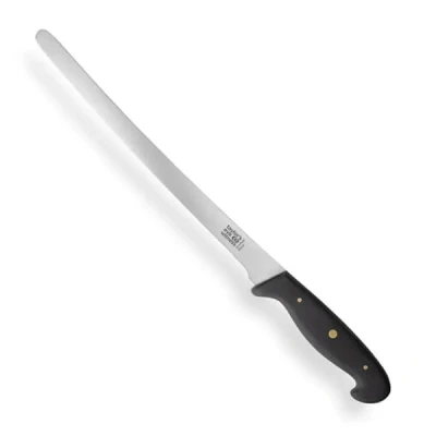 Made in Sheffield by skilled makers, this Taylor's Eye Witness Professional Series Sheffield Made 25cm Ham Slicer is of a classic design and part of a range that won the Design Council Award for 'An Outstanding British Product'.The 25cm blade on this ham slicer is precision ground and hand honed from high carbon stainless steel for perfect edge retention.Shaped to fit perfectly in the hand, the contours of the handle make it virtually impossible for the knife to accidently slip during use.Although this Professional Series 25cm ham slicer from Taylor's Eye Witness is dishwasher safe, we would recommended hand washing.The Taylor's Eye Witness Professional Series Sheffield Made 25cm Ham Slicer is supplied with a no quibble, manufacturer's lifetime guarantee.  Knives are not for sale to persons under the age of 18. - all knives and bladed products are delivered by Age Verified Delivery (AVD). The carrier may request proof of age in order to deliver your parcel. If proof of age is not available, or the recipient is underage, the carrier will refuse to deliver.