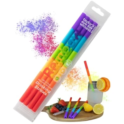Taylor's Eye Witness Set of 4 Rainbow Silicone Reusable Drinking Straws