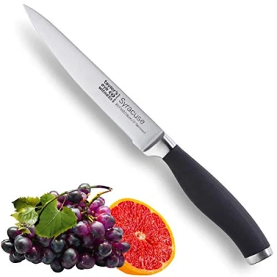 ✅ CONTEMPORARY SYRACUSE DESIGN: Taylors Eye Witness have been designing and creating knives for over 150 years. This experience is shown in the handmade craftsmanship of this range of knives. The sleek well weighted knife comes with a soft, Matte Black rubberised handle which will give a grip like no other. These unique knives would suit both contemporary dining and traditional farmhouse kitchen alike and would be a talking point with family, friends and dinner guests. ✅ PRECISION CONTROL: Featuring a medium length blade for enhanced accuracy, precision and speed. Truly a multi-functional vegetable and fruit knife. It is perfect for crunching through the tough crust of bread or using its jagged teeth to smoothly slice through the delicate skin of tomatoes or grapes to leave a smooth, flat finish. It’s also versatile enough for bigger jobs like dicing an onion, removing seeds from chilli peppers or jalapeños or slicing mangos or avocados. ✅ 25 YEAR GUARANTEE: At Taylor's Eye Witness, we are so proud of our products that we guarantee the tools in the Syracuse Range for 25 Years. If in the unlikely event that your knife becomes defective under normal kitchen use and following care instructions provided, it will be repaired or replaced without charge. Best used on wooden or plastic chopping board/surface. Dishwasher safe, but hand wash recommended to extend the knives life. ✅ EFFORTLESS CUTTING AND SLICING: Fine- taper ground blade edge for effortless slicing and dicing, that's extraordinarily resilient to blunting whilst at the same time being easy to sharpen. The contemporary sleek, stylish handle is not simply for aesthetics; it's ergonomically designed for good grip & comfort even after prolonged use, highly hygienic & keeps you in command to control the thickness of each slice. Cuts precise laser thin slices right or left-handed. ✅ COMPLETE THE SET: 8cm/3.5” paring knife, 13cm/5" all purpose knife, 13cm/5” santoku knife, 15cm/6” Cooks Knife, 18cm/7” santoku Knife, 20cm/8” Chef Knife and a 20cm/8" bread knife. Perfect housewarming gift idea or wedding present for the bride and groom. Ideal for hobby chef to professional. The best tools that you could have in your cooking arsenal. What are you waiting for? Do your culinary and gourmet skills justice with a contemporary Syracuse knife by Taylor's Eye Witness., Weight: 0.1322773572 Pounds, Manufacturer: Taylors Eye Witness