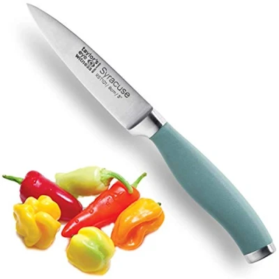✅ CONTEMPORARY SYRACUSE DESIGN: Taylors Eye Witness have been designing and creating knives for over 150 years. This experience is shown in the handmade craftsmanship of this range of knives. The sleek well weighted knife comes with a soft, Aqua Blue rubberised handle which will give a grip like no other. These unique knives would suit both contemporary dining and traditional farmhouse kitchen alike and would be a talking point with family, friends and dinner guests. ✅ PRECISION CONTROL: Short blade for enhanced accuracy, precision and speed, this knife is built for garnishing jobs, mincing, peeling, slicing, dicing, where control is essential. Perfect for intricate jobs in the kitchen like peeling fruits & vegetables, trimming beans, but also versatile enough for jobs like dicing onions, removing seed from chilli peppers, jalapeños or slicing mangos, avocados. ✅ 25 YEAR GUARANTEE: At Taylor's Eye Witness, we are so proud of our products that we guarantee the tools in the Syracuse Range for 25 Years. If in the unlikely event that your knife becomes defective under normal kitchen use and following care instructions provided, it will be repaired or replaced without charge. Best used on wooden or plastic chopping board/surface. Dishwasher safe, but hand wash recommended to extend the knives life. ✅ EFFORTLESS CUTTING AND SLICING: Fine- taper ground blade edge for effortless slicing and dicing, that's extraordinarily resilient to blunting whilst at the same time being easy to sharpen. The contemporary sleek, stylish handle is not simply for aesthetics; it's ergonomically designed for good grip & comfort even after prolonged use, highly hygienic & keeps you in command to control the thickness of each slice. Cuts precise laser thin slices right or left-handed. ✅ COMPLETE THE SET: 13cm/5” all purpose knife, 13cm/5" Serrated utility knife, 13cm/5” santoku knife, 15cm/6” Cooks Knife, 20cm/8" bread knife and a 2pc & 2pc starter set. Perfect housewarming gift idea or wedding present for the bride and groom. Ideal for hobby chef to professional. The best tools that you could have in your cooking arsenal. What are you waiting for? Do your culinary and gourmet skills justice with a contemporary Syracuse knife by Taylor's Eye Witness.