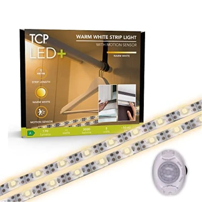 TCP LED Plus Strip Light PIR 3000K Battery 1 Metre, Warm White (BSMTLPIR30BATT1M1P)