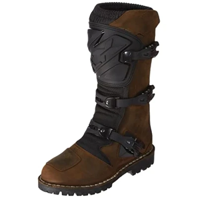 Drifter Waterproof adventure boots, made with the traditional "Ideal" construction, featuring double stitching and midsole to increase robustness. Made of full-grain leather with T-DRY waterproof membrane, usable in all conditions, vintage effect pull-up finish and microfibre inserts. Reinforced polyurethane inserts on the tibia, ankle, toe and heel, as well as protections in the gear shift area, guarantee maximum safety. Closure: buckle. Selector reinforcement: yes.