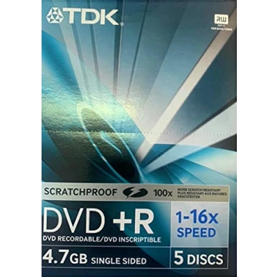 TDK DVD + R 4.7GB 16x Blank Discs 5 Pack Jewel Case