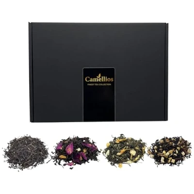 AmazonCOMPLETE SAMPLER SET – Includes 4 × 25g packs: English Breakfast, Earl Grey, Spiced Apple Chai & Jasmine Mint Green Tea. LUXURY GIFT BOX – Elegant black presentation box, ideal for birthdays, Christmas, clients, or thank-you gifts. GENEROUS SERVINGS – Over 40 cups of premium loose leaf tea across four distinctive blends. MADE IN THE UK – Hand blended and packed using 100% natural ingredients. PERFECT GIFT FOR TEA LOVERS – A thoughtful present for anyone who enjoys tea.