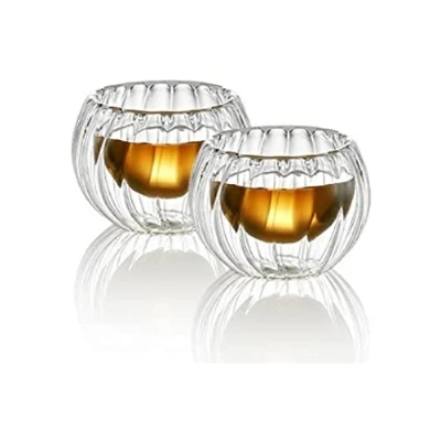 TEA SOUL 10 x 12 cm 60 ml 2 Piece Glass Squash Shaped Double Wall Cup, White