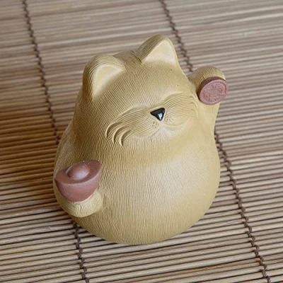 Yixing Clay Fortune Cat Tea Figure is a beautiful Yixing clay figurine used during the traditional tea ceremony. If you have ever seen the Chinese Gunfu Cha tea ceremony in China, you probably noticed that almost all tea trays (Chaban) have a clay figure. This is a small piece of clay art from Yixing, which is constantly bathed during the tea ceremony as a wish of luck and fortune. You can wet your tea figure with the hot water you used to warm the tea utensils before drinking or you can use the water you washed the tea leaves with at the beginning of the ceremony. In China, tea figures are revered in the same way as pets, although they are essentially small items intended to decorate the tea tray.