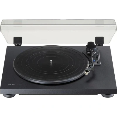 Give your old records a spin again with this Teac turntable. It can play 33 1/3, 45 and 78 RPM, so you can listen to a one off single or a full album anytime you like. And the best part is, the tonearm returns automatically when the record ends so you don't wear out the needle. With built-in Bluetooth, you can stream your records straight to wireless speakers or headphones - no cables, no fuss. Prefer a wired setup? You've got a standard RCA output too.Good to know- The solid MDF cabinet helps reduce unwanted vibrations, giving you clearer, more stable sound- Its built-in phono EQ amplifier connects easily to almost any audio setup—just plug in, pair up, and press play- The Audio-Technica cartridge sticks to the groove just right, so your records sound clear- The hinged plastic cover protects your record player from dust and scratches