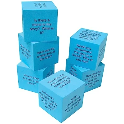 Content Variety: Six 2-inch foam cubes offer a diverse range of 36 questions, promoting engagement and assessing comprehension skills across various text types and reading strategies. Material Characteristics: The 2-inch foam material used for the cubes is lightweight, soft, and quiet, enhancing the tactile experience for users. Additionally, the foam is washable, promoting easy maintenance and long-term usability. Practical Design: The cubes feature square edges, preventing excessive rolling during use. This design consideration contributes to a more controlled and focused learning environment. Convenient Packaging and Support: The product is packaged in a resealable storage bag, promoting easy organization and storage. Teaching tips are included, offering additional support for educators in effectively utilizing the cubes for instructional purposes.