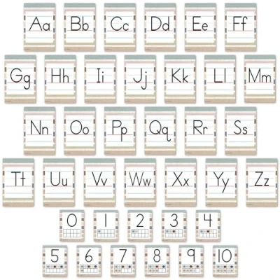 37 total pieces 26 alphabet cards measuring 5-1/2" x 8-1/2" 11 number cards 0-10 measuring 4-1/4" x 5-1/2" Bulletin Board Guide with suggestions and activities