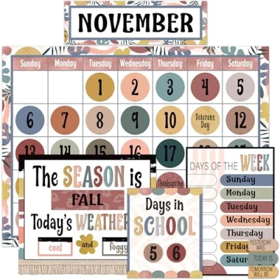 Perfect for classrooms: The additional pieces for counting days of the school year, weather, and seasons, make it perfect for classroom use. Stay organized: Keep track of important dates and events all year round with this modern calendar display. Easy-to-read: The large number pieces and colorful monthly headers make it easy to read and understand, even from a distance. Celebrate special occasions: The additional pieces for holidays and special occasions ensure you won't miss any important celebrations. Large size: Measuring 24" x 18", this blank calendar is big enough to be seen from across the room, making it perfect for home or classroom use. Complete package: With 110 total pieces included, you'll have everything you need to keep your schedule organized and on track.