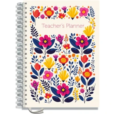 Teacher Planner 2025 2026 A4 size by Pirongs 10 Lesson for Teachers Page a day Undated, Hardback, Wiro bound Flowers on Parade