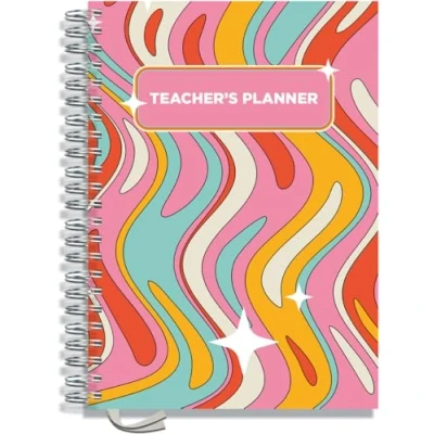 Teacher Planner 2025 2026 A4 size by Pirongs 10 Lesson for Teachers Page a day Undated, Hardback, Wiro bound Groovy Curtain