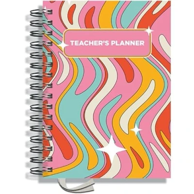 Teacher Planner 2025 2026 A5 size by Pirongs 5 Lesson for Teachers Page a day Undated, Hardback, Wiro bound Groovy