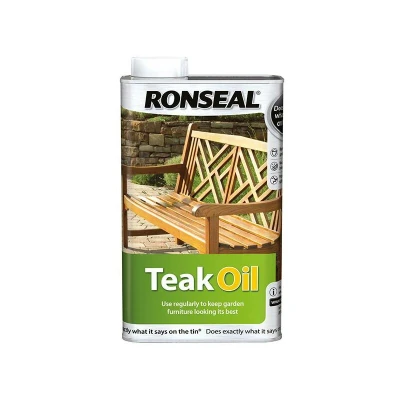 General description Ronseal Teak Oil naturally nourishes, protects, and enhances all types of hardwood garden furniture. It deeply penetrates the wood to replace oils lost through weathering, restoring old garden furniture and maintaining the appearance of new hardwood garden furniture. This oil is ideal for use on various hardwoods, including Teak, Oak, and Mahogany, providing a more natural semi-translucent finish that leaves your furniture beautifully finished. Technical specifications Size: 500ml Color: Teak MPN: RSLTO500 EAN: 5010214858194 Compatibility and accessories Suitable for all types of hardwood garden furniture, including Teak Installation Apply with a brush or cloth to a clean, dry wood surface Allow to penetrate and dry thoroughly before use or exposure to weather Usage Revives old garden furniture by restoring oils lost through weathering Protects and maintains the appearance of new hardwood furniture Provides a natural, semi-translucent finish Other information Water
