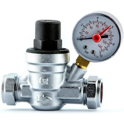 Team Controls Water Pressure Reducing Valve 15mm Compression with Gauge RegulatingPressure Regulators TCPRV15