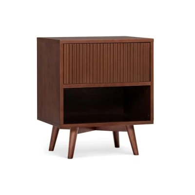 Compact Drawer and Shelf Layout: Provides versatile bedside storage without taking up excess space. Minimalist Push-Open Drawer: Clean front design keeps the look uncluttered. Fluted Wood Detailing: Enhances visual depth with subtle texture. Durable Construction: Engineered wood and solid legs ensure stability. Walnut Finish Detail: Warm finish adds character to bedroom settings.