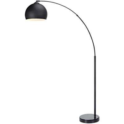 Teamson Home Arquer 170cm Arc Floor Lamp for Living Rooms, Offices, Dining Bedrooms with Faux Black Marble Base and Bell Shade