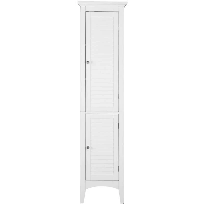 General description Add this functional tall free-standing cabinet to your bathroom for more storage space and style. The simple silhouette and white hue complement your home interior, while the louvered doors keep your toiletries hidden with style. The cabinet provides plenty of interior shelves to tuck away essentials like spare soaps, shampoos, clean towels, and all the other accessories for your convenience. Ideal for any size bathroom. Technical specifications Dimensions: 38.1 x 33 x 160 cm Material: High quality durable MDF Design: Double-tier louvered doors with four interior shelves Finish: Spotless white finish Door pulls: Zinc with chrome finish, oval-shaped Other information Safety: Equipped with anti-tipping hardware for safety