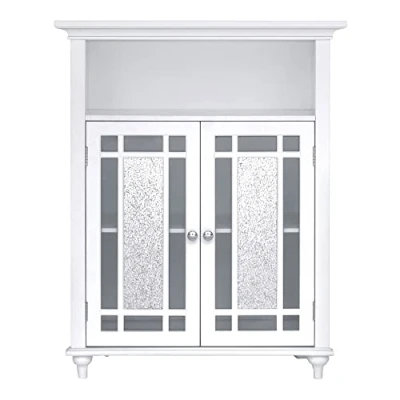 General description This Elegant Home Fashions Windsor Wooden Floor Cabinet features a classic design with a timeless white finish and silver glass mosaic doors. It is adorned with beveled trim and chrome-finished knobs, making it a beautiful addition to any space. This cabinet not only enhances your decor but also provides functional storage with an adjustable shelf to meet your specific needs. Constructed from durable engineered wood, it is designed for long-lasting use while maintaining a clutter-free environment. Technical specifications Dimensions: 86.4 x 67.3 x 30.5 cm Material: Engineered wood Installation Easy, step-by-step instructions and all necessary hardware for installation are included for quick assembly. Usage This cabinet is ideal for use in living areas or bathrooms, providing accessible storage without occupying too much space.