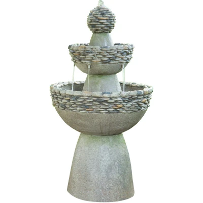 Teamson Home Garden Water Fountain, Large Contemporary Feature, 3 Tiered Stone Effect Indoor Waterfall Ornament with Pump, Outdoor Patio Decor