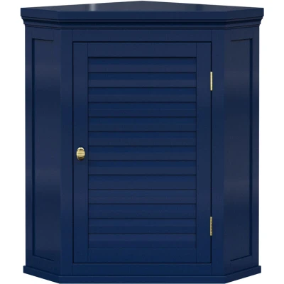 Teamson Home Glancy Removable Corner Wall Cabinet with Faux Louvered Door, Navy