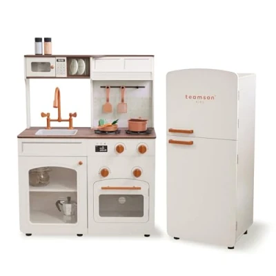 MODULAR DESIGN: Separate fridge and kitchen units offer flexible layouts REALISTIC DETAILS: Opening doors and clicking knobs mimic real kitchens ACCESSORY SET: Includes 14 play kitchen accessories STORAGE FEATURES: Shelves and cupboards support tidy play STURDY BUILD: Wooden construction designed for durability, Manufacturer: Teamson