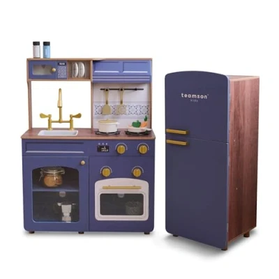 MODULAR LAYOUT: Separate fridge and kitchen units adapt to different room sizes REALISTIC PLAY: Clicking knobs, opening doors and sink features add realism ACCESSORY SET: Includes 14 kitchen accessories for imaginative play PRACTICAL STORAGE: Built-in shelves keep accessories organised STURDY WOOD: Durable wooden construction designed for long-term use, Manufacturer: Teamson