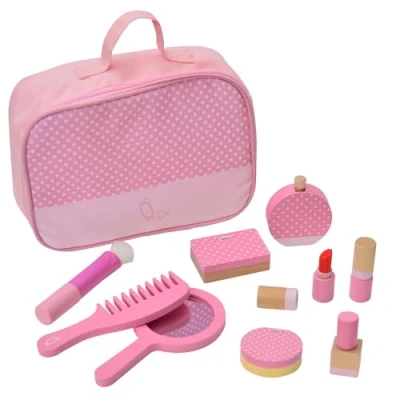 VANITY BAG: This wooden makeup set features a variety of cosmetics and applicators in bright pink with a polka dot design to help your little princess practice their makeup skills COMPACT: All pieces within this makeup kit feature a compact, kid-sized design ensuring they are made just for little hands which means more fun and accessible play. ACCESSORIES: Including a mirror, comb, makeup brush, eyeshadow palette, blush compact, perfume, two lipsticks, nail polish, and a makeup bag to complete your little one's play experience DURABILITY: A sturdy wooden construction for all products and they're very easy to clean from every day messes, providing long-lasting durability and playtime ASSEMBLY: No assembly required. Unpack and play straight-away. The bag measures: 22 x 7.9 x 118.0 cm. This makeup set is suitable for children aged + 3 years., Manufacturer: Teamson