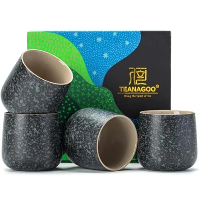 JoybuyThe TEANAGOO Ceramic Japanese Tea Cup Set includes four 7.2oz/205ml charcoal grey cups, featuring a minimalist Asian design perfect for enjoying tea. This elegant set combines modern style with traditional Japanese craftsmanship, ideal for daily use or gifting.