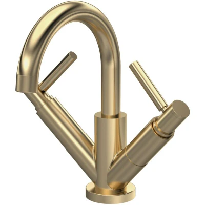 Tec Lever Mono Basin Mixer Tap Dual Handle with Waste Brushed Brass Hudson Reed