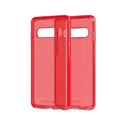 Tech21 Protective Samsung Galaxy S10 Case Thin Patterned Back Cover with FlexShock Evo Check Bright Rouge