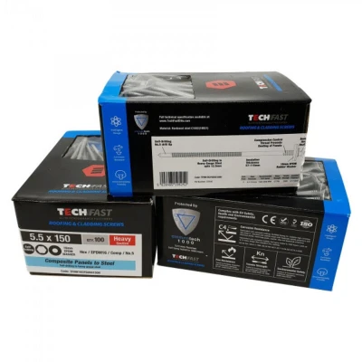 TechFast Heavy Duty Composite Sheet to Steel Roofing Screws 5.5 x 150mm Elementech Box 100