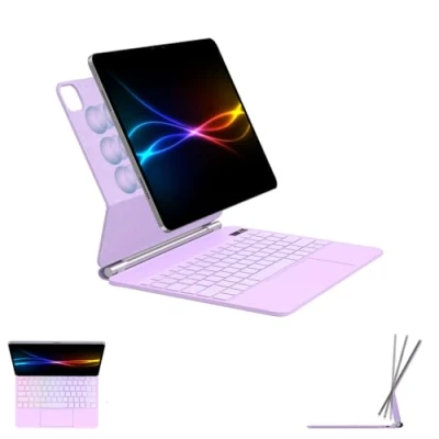 Amazon[Compatibility] Fits iPad Air 13" 2026/2025/2024 (M4/M3/M2) and iPad Pro 12.9" 2018-2022 (3rd/4th/5th/6th Gen). Model numbers: iPad Air 13 - A3268, A3269, A3271, A2898, A2899, A2900. iPad Pro 12.9 - A2436, A2437, A2764, A2766, A2378, A2461, A2379, A2462, A2229, A2069, A2232, A2233, A1876, A2014, A1895, A1983 [MacBook-Style Productivity] Like magic, your iPad connects via Bluetooth and feels like a laptop for emails, reports, learning apps, travel and everyday productivity (without using trademarked wording). [Floating Magnetic Stand] Cantilever “floating” design gives a comfortable viewing angle for typing, drawing, meetings and video calls. Open the case and your iPad wakes instantly. [Quiet Scissor-Switch Keys] Smooth, low-noise keys deliver fast and accurate typing - ideal for office, students, classrooms and shared environments. [Precision Multi-Touch Trackpad] Built-in trackpad supports multi-gesture control: swipe, scroll, zoom and quick switching between apps for efficient editing and multitasking. [Backlit QWERTY Keyboard] 7-colour backlight with adjustable brightness for low-light typing, travel and night work. Smooth, quiet keys for shared spaces like classrooms, NHS environments and open-plan offices. [Smart Bluetooth Memory] Remembers your last pairing and reconnects quickly when powered on, so you can open, type and get straight to work. [Battery + LCD Status Display] 500mAh rechargeable battery supports up to 30 days use (backlight off). LCD display shows battery, caps lock, connection and charging status. [Slim Protection for B2B Use] Soft-touch protective design keeps your iPad secure in bags and busy environments - ideal for schools, NHS, field staff, corporate rollouts and remote working.