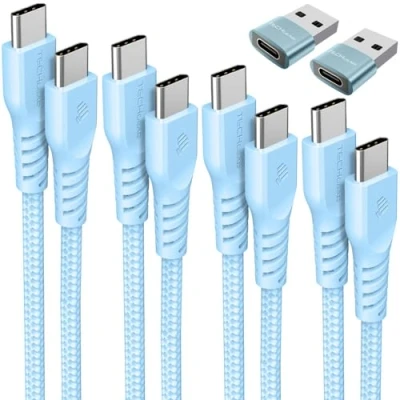 [6 PACK ALL-IN-ONE SET] Includes 4 USB-C to USB-C cables (0.3 m, 1 m, 2 m, 3 m) + 2 USB-C to USB-A adapters – a complete charging kit for home, office, car and travel. Different lengths cover every use case. [VERSATILE LENGTHS FOR EVERY SITUATION] 30 cm ideal for power banks or tight spaces, 1 m perfect for desks and daily charging, 2 m for flexibility, 3 m for sofa or bedside use when the plug is far away. [60W Fast Charging] TECHGEAR Type C to Type C Cable provides fast charging up to 60W (20V/3A) to all USB-C devices that support PD/QC 4.0. It supports PD, QC and FCP fast charging technologies. (Note: This is USB C to USB C cable not USB C to USB A cable, Charging speeds also depends on your device and charger!) [Data Transfer & Sync] This USB C PD cable supports data transmission up to 480Mbps (40-60MB/s) based on USB 2.0. *Note: This Cable does not support Video Out. [Strong & Durable Build] Premium braided nylon with reinforced strain relief, laser-welded metal tips and internal fibre core. Built to withstand over 45,000 bends – perfect for travel, home or office use. [Perfect for Your iPhone 17/16/15] Our premium USB-C to USB-C cable ensures reliable charging for your iPhone 17 series. Stay powered up and connected without compromise. *Tested to charge your iPhone 15 up to 50% in 30 minutes. [Wide Compatibility] This USB C to USB C charging cable (not USB A to USB C) is compatible with all USB-C devices, such as iPhone 17//Pro/Pro Max/Air, Samsung Galaxy S26 S25 S24 S23 S22 S21 S20 Ultra/Plus/FE/Edge, Note 20/A15/A16/A17/A35/A36/A55/A56/A05s, iPad Pro 2024/2022/2021, IPad Air 11"/13"/4th/5th Gen, iPad Mini 7th/6th, iPad A16 11th/10th, MacBooks, Redmi Note 15/14/1312/11/10, Pixel 10/9/8/7/7a/6/6a, Honor Magic 8/76/5/4/90/70/X5 and more, PS5/XBox One Controller, Switch 2 OLED/Lite [TECHGEAR QUALITY GUARANTEED] UK brand since 2012 – trusted for durable, safety-tested charging accessories. Includes 4 cables + 2 adapters. Backed by UK support and 12-month warranty.