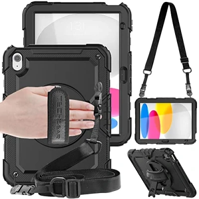 TECHGEAR UTILITY Case for iPad 11" A16 (11th Gen 2025) & 10.9" (10th 2022), Rugged Heavy Duty Shockproof Cover Screen Protection, 360 Stand, Hand Shoulder Strap Work, School, Travel etc Black