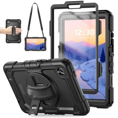 [Designed for Tab A11] – Heavy duty Utility Case for Samsung Galaxy Tab A11 8.7" (2025 release, SM-X130 / SM-X133 / SM-X135). Not suitable for Tab A11 Plus 11" or other models. [Triple-Layer Rugged Protection] – Full body hybrid design: tough polycarbonate inner shell, soft shock-absorbing silicone cladding, plus 2x front screen frames (1 with integrated protector, 1 for glass/film protectors). [360° Rotating Stand] – Built-in kickstand rotates fully to support both portrait and landscape angles. Perfect for classrooms, conferences, hospitality check-ins, and presentations. [Adjustable Hand Strap] – Secure rear strap allows for safe one-handed use. Comfortable grip helps prevent drops and is ideal for teachers, nurses, flight staff and field workers. [Detachable Shoulder Strap] – Carry your tablet hands-free with the included strap, or mount it on a car headrest. A must-have for schools, NHS, airports, warehouses and travelling professionals. [Sealed Ports & Full Access] – Flaps protect charging port and headphone jack. Cut-outs for camera, mic and speakers, with moulded buttons for easy operation without removing the case. [Business, Education & Hospitality Ready] – Trusted by schools, NHS trusts, logistics, airports, hospitality and industrial sectors for reliable, rugged tablet protection.