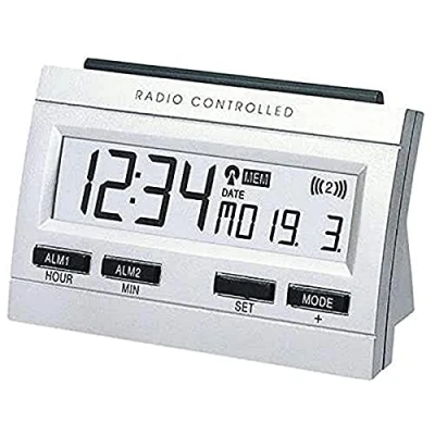 Techno Line WT 87 Radio Controlled Alarm Clock with Indoor Temperature Display and Memo Function Silver