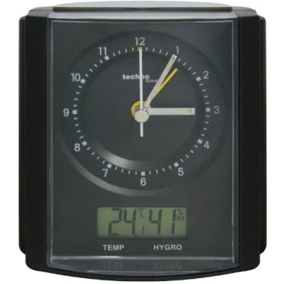 Radio-controlled alarm clock With light LCD screen Measures air temperature and humidity Clock hands move silently