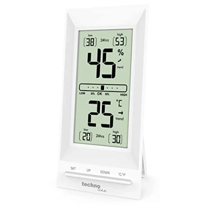 Small temperature station or thermometer/hygrometer Modern housing in white Indoor temperature display Indoor humidity display Min/max display. Room comfort display. Calibration function. Resolution: 0 1 degree Celsius, Weight: 0.14109584768 pounds, Manufacturer: Technoline