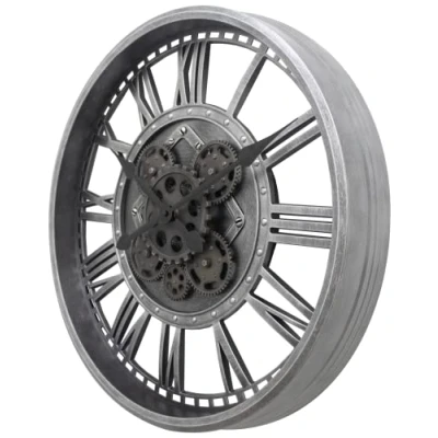 This unique XXL wall clock in industrial style is a real eye-catcher no matter what room, with its over 50 cm diameter, this wall clock is definitely an absolute eye-catcher with Roman numerals integrated into the frame, absolute highlight: the moving gears. You can turn clockwise and counterclockwise whole clock in metal look. Dimensions: 50.5 cm diameter x 7 cm depth. Requires 2 AA Mignon LR06 (one for the movement and one so that the gears rotate)