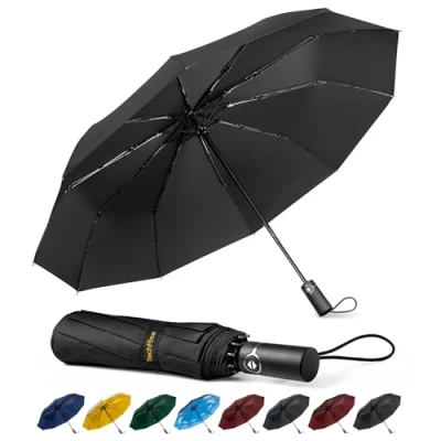 TechRise Umbrella Windproof Travel Umbrella: 10 Ribs Automatic Compact Strong Wind Proof Umbrella, One Button Auto Open Close Resistant Folding Lightweight Portable Black for Men Women