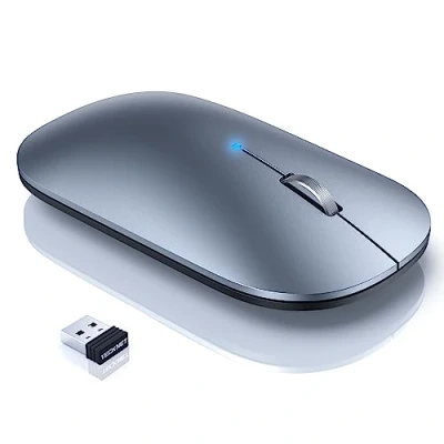 【3 Modes Connection】This Bluetooth mouse can freely switch between 2 devices using modes BT5.0/3.0 and 2.4GHz. The 2.4GHz USB receiver enables plug-and-play functionality, providing a reliable working connection up to 15 meters (49 feet) 【4 Adjustable DPI】The wireless mouse offers 4 DPI settings: 4000/2400/1200/600, allowing you to control the computer mouse speed freely. Easily adjust DPI by pressing the button on top of the mouse. Its shape accommodates both right and left-handed users 【90 Days of Use】2.5 hours of charging provides up to 90 days of use. This rechargeable wireless mouse for laptop is powered by a rechargeable lithium battery (included). Auto-sleep technology saves power for energy efficiency and environmental conservation 【90% Noise Reduction】The silent mouse for laptop with noiseless click technology reduces click noise by up to 90%, making it ideal for offices, conference rooms, libraries, and bedrooms. This wireless silent mouse allows you to focus on work without disturbing others 【USB C Charging】This Bluetooth mouse is charged via a Type-C port, compatible with your phone's charging cable for convenience. The hidden charging port offers better dust protection for your wireless mouse 【Portable and Compact】Its ultra-thin design (24mm) and lightweight (72g) make the Mac mouse elegant and convenient for laptop use. Easily store it in your laptop bag for travel or business trips 【Wide Compatibility】Compatible with Windows 11/10/8/8.1/7/2003/2000/Vista/XP, Android, Mac OS, and Linux. Suitable for desktops, laptops, MacBooks, iPads, and more. If your laptop only has a USB-C port without Bluetooth, an adapter (not included) may be required