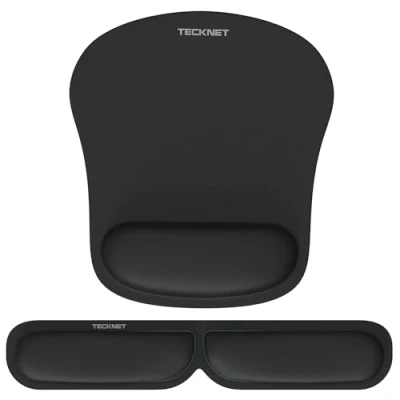 TECKNET Mouse Mat Keyboard Wrist Support Set, Pad Foldable Rest, Ergonomic with Comfortable Memory Foam, Non Slip Desktop for Working Gaming